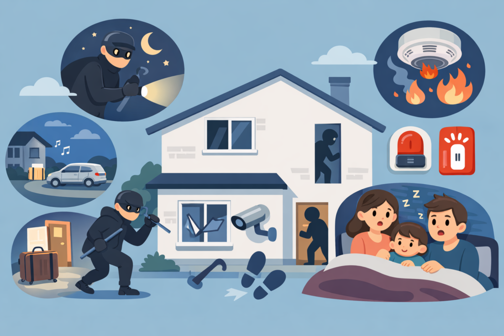 戸建て住宅でホームセキュリティが必要とされる大きな理由のひとつは、空き巣や侵入被害のリスクがあるためです。特に、家族全員が外出している昼間や、周囲が静かになる夜間は狙われやすい傾向があります。