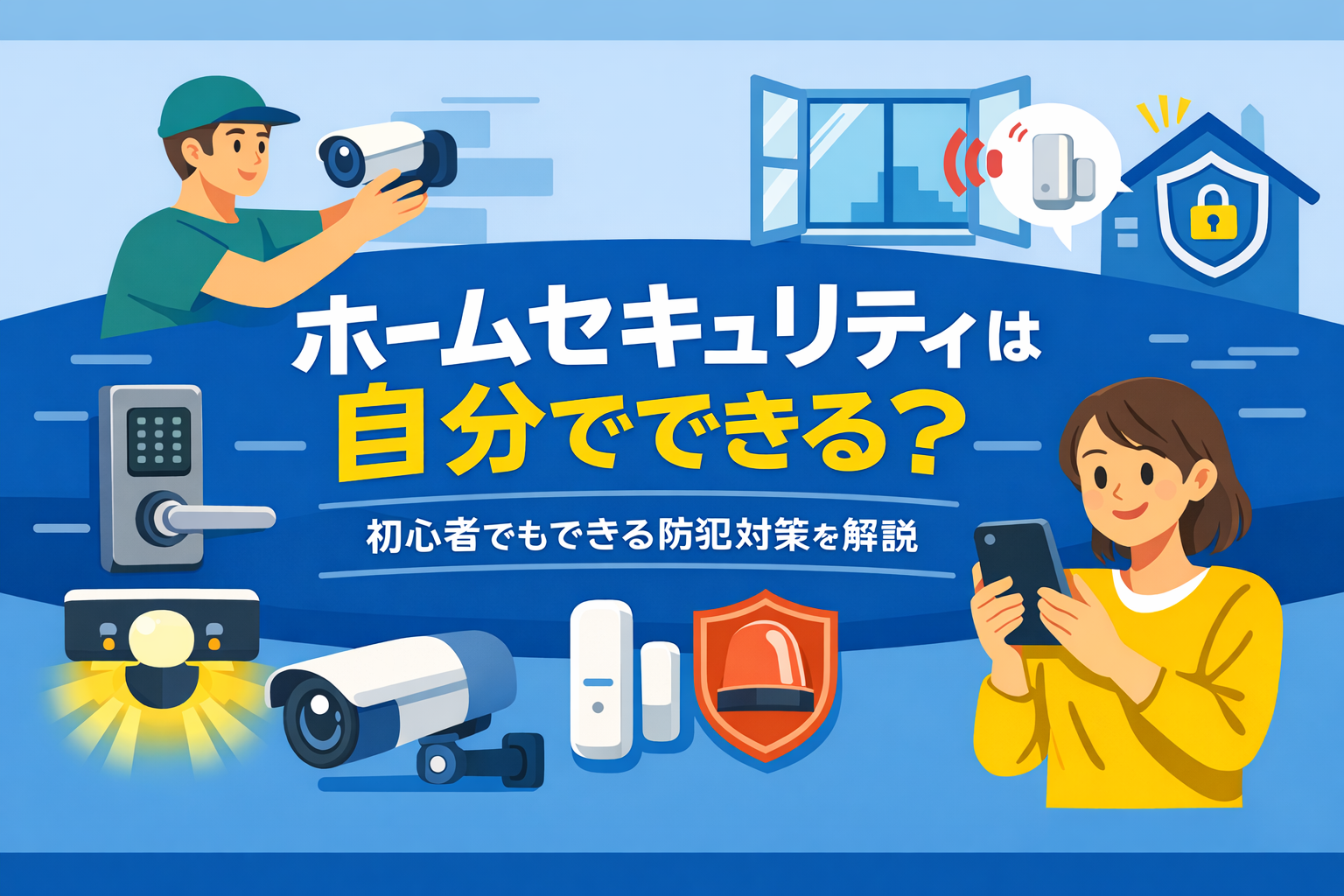 ホームセキュリティは、自分で導入することも十分可能です。最近は、防犯カメラや開閉センサー、センサーライト、スマートロックなどを手軽に購入でき、スマホと連携できる製品も増えています。以前よりも、家庭でも防犯対策を始めやすい時代になりました。